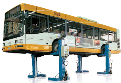 Screws are automatically lubricated by felt pads supplied by a permanent oil reservoir which guarantees lubrication during movement. A series of runners (10 per carriage), manufactured in Ertalon, with low friction coefficient and excellent resistance to wear, guarantee a balanced lifting of the vehicle in any position.
