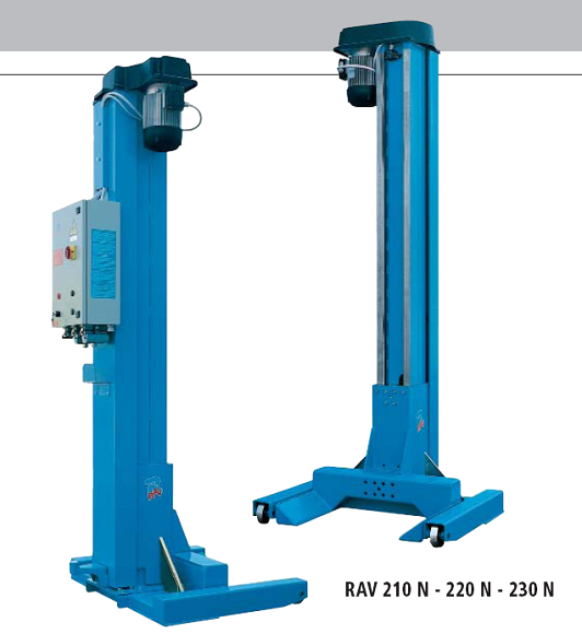 Columns in boxed sheet steel with sliding profiles of rollers in high resistance steel. Steel rollers for carriage movement fitted on self-lubricating bearings requiring no maintenance.